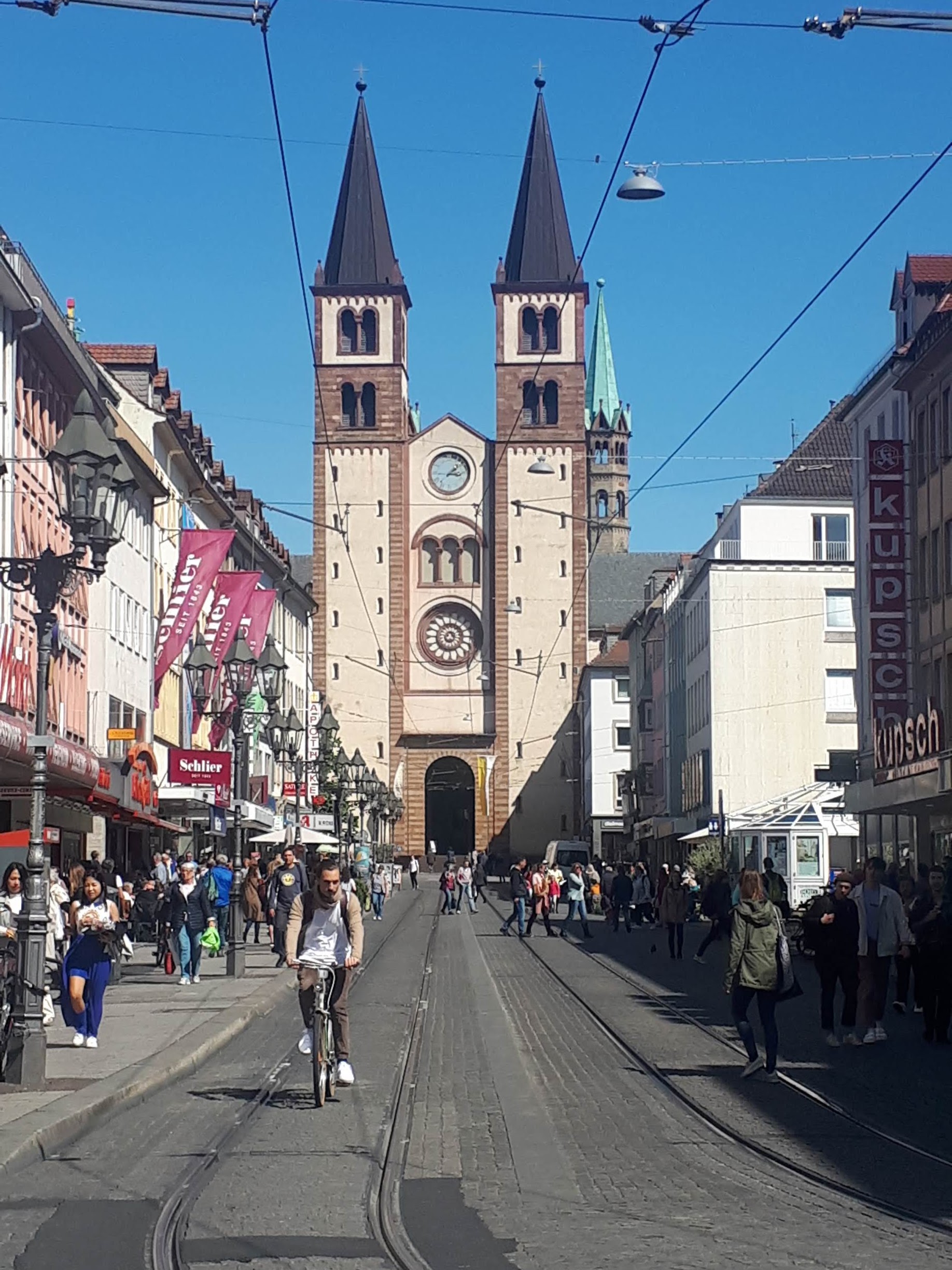 The Würzburger Cathedral stands proudly at the end of this busy street which leads directly to the “Wine Bridge” crossing the river Main. This was a great place to go shopping or hang out as well as a welcome landmark to see after a long journey into Sanderau or across the river. I was glad to call this city home.