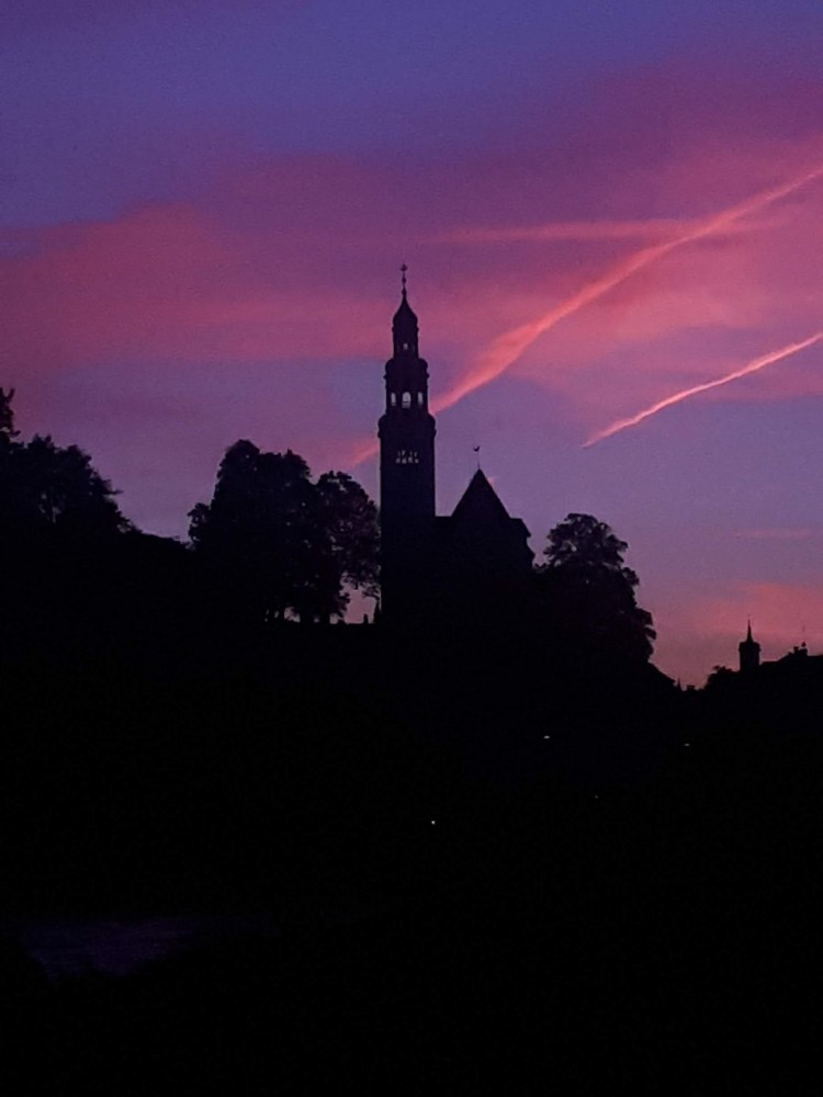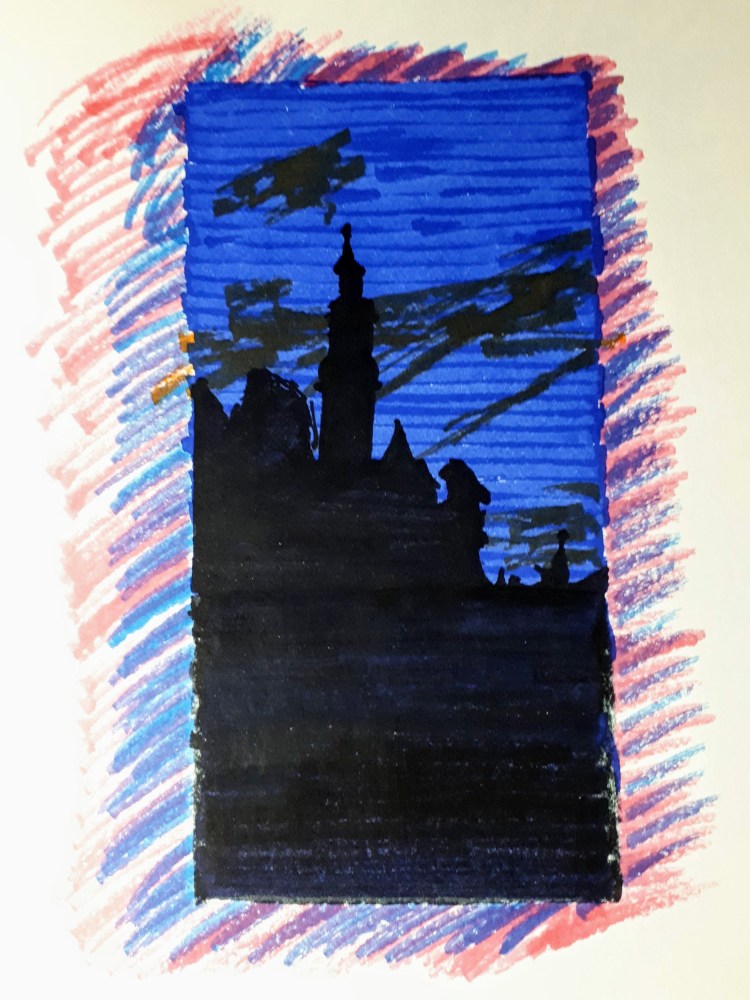 Salzburg is famous for being featured in the movie musical “The Sound of Music”. Exploring the landmarks from the famous movie scenes was a fun time. Even more fun was having a picnic dinner by the river at the end of a long day hiking. The sky turned a magical color for just a few moments and I was inspired to try to draw it on paper.