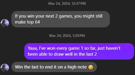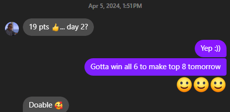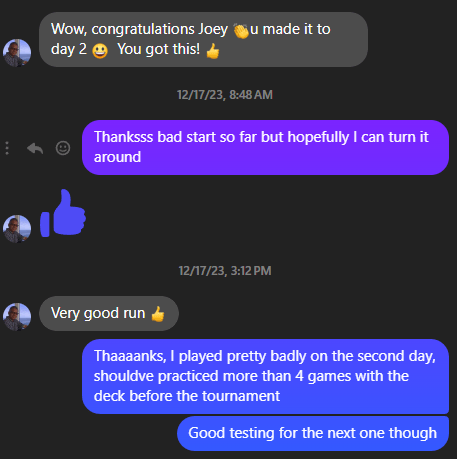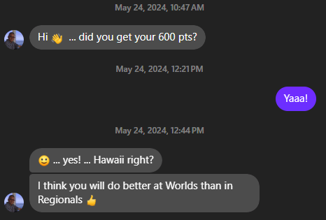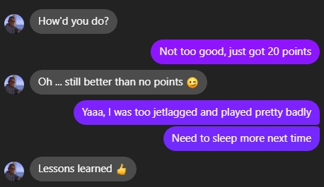 And when I started traveling to tournaments, this time with friends, he was always messaging me to check in and be the first to congratulate me for a good result or help cheer me up after a bad result.